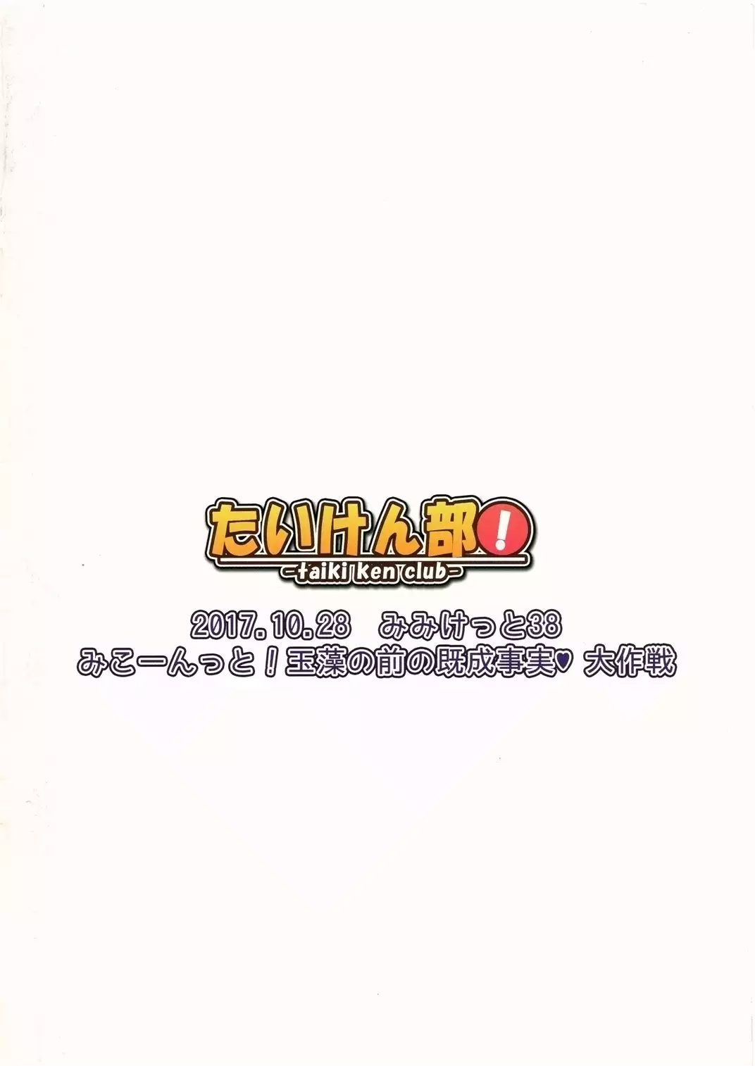 (Mimiket 38) [Taiki Ken Club! (Taiki KEN)] Mikoontto! Tamamo no Mae no Kisei Jijitsu Daisakusen (Fate/Grand Order)