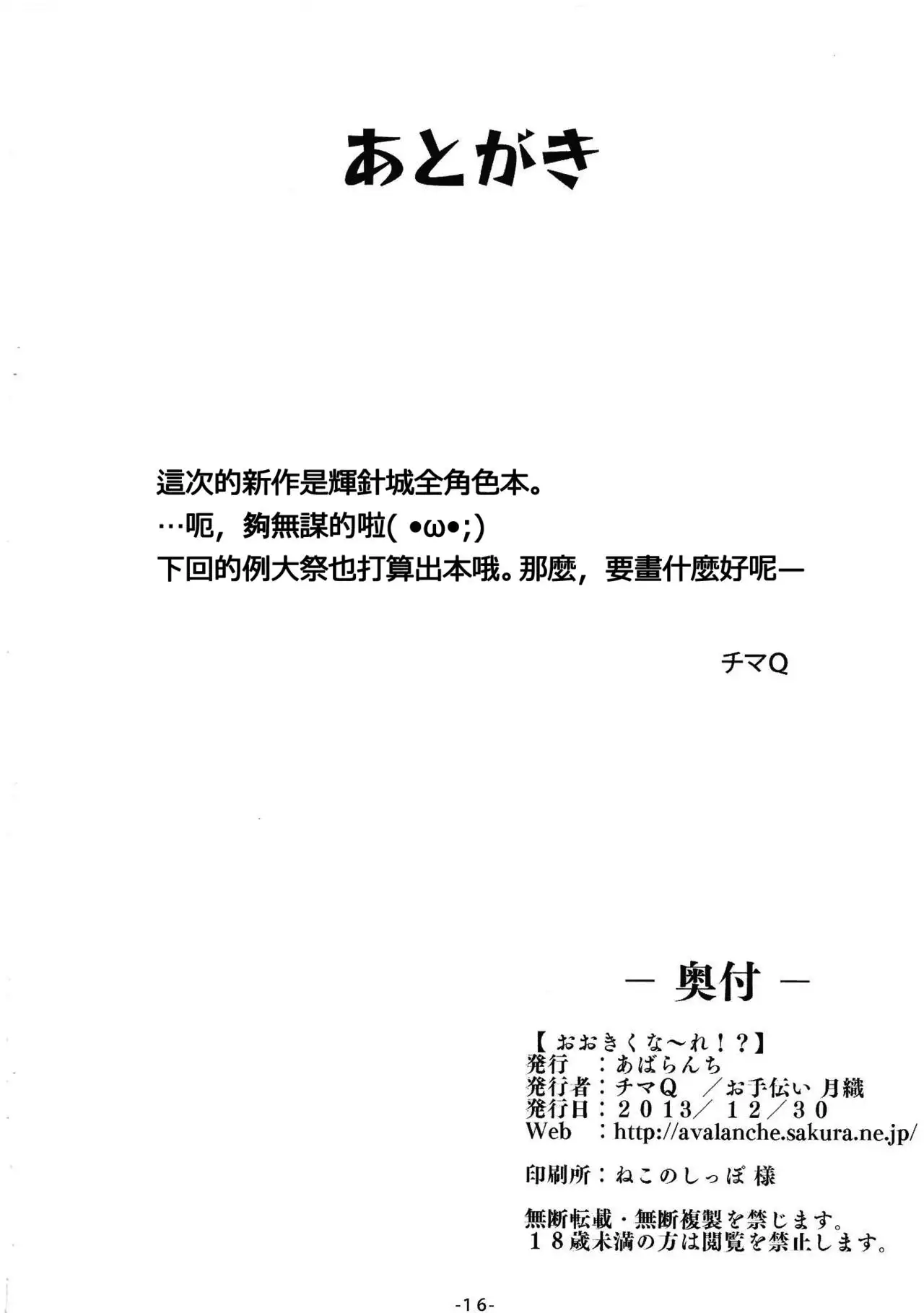 (C85) [Avalanche (ChimaQ)] Ookikuna ~ Re!? (Touhou Project)