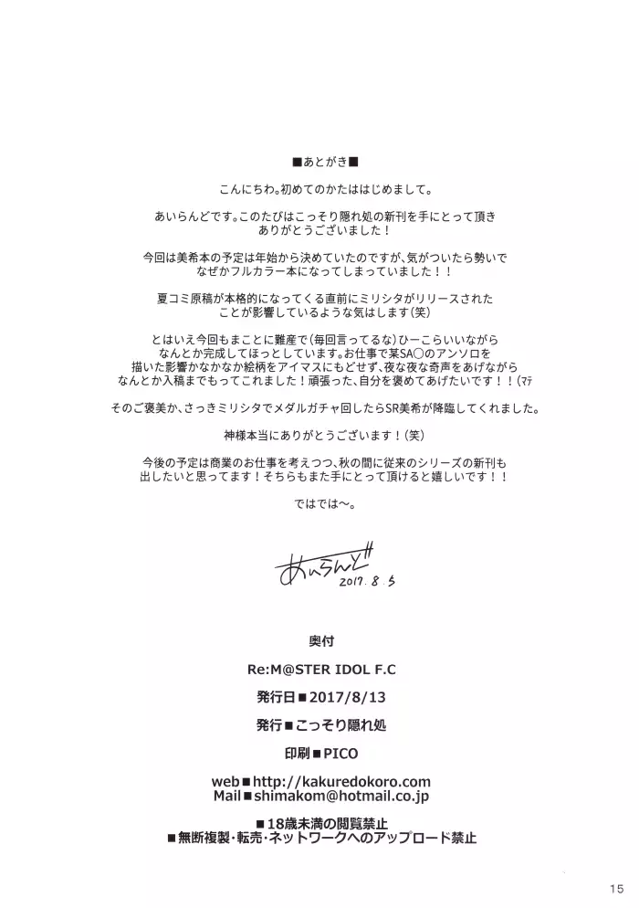 (C88) [Kossorikakuredokoro (Island)] Re:M@STER IDOL ver.HC (THE iDOLM@STER)