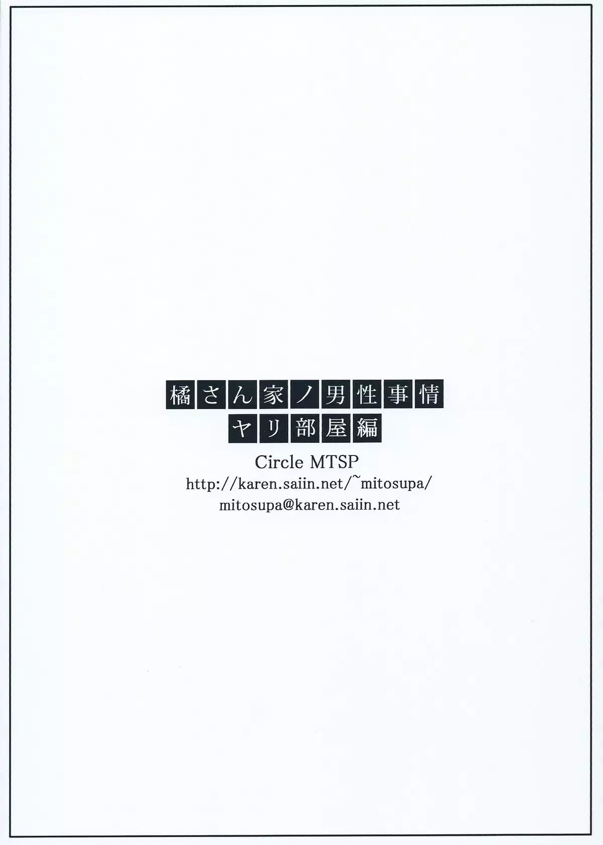 (C84) [MTSP (Jin)] Tachibana-san-chi no Dansei Jijou Yaribeya-hen [English] [coresplinter]