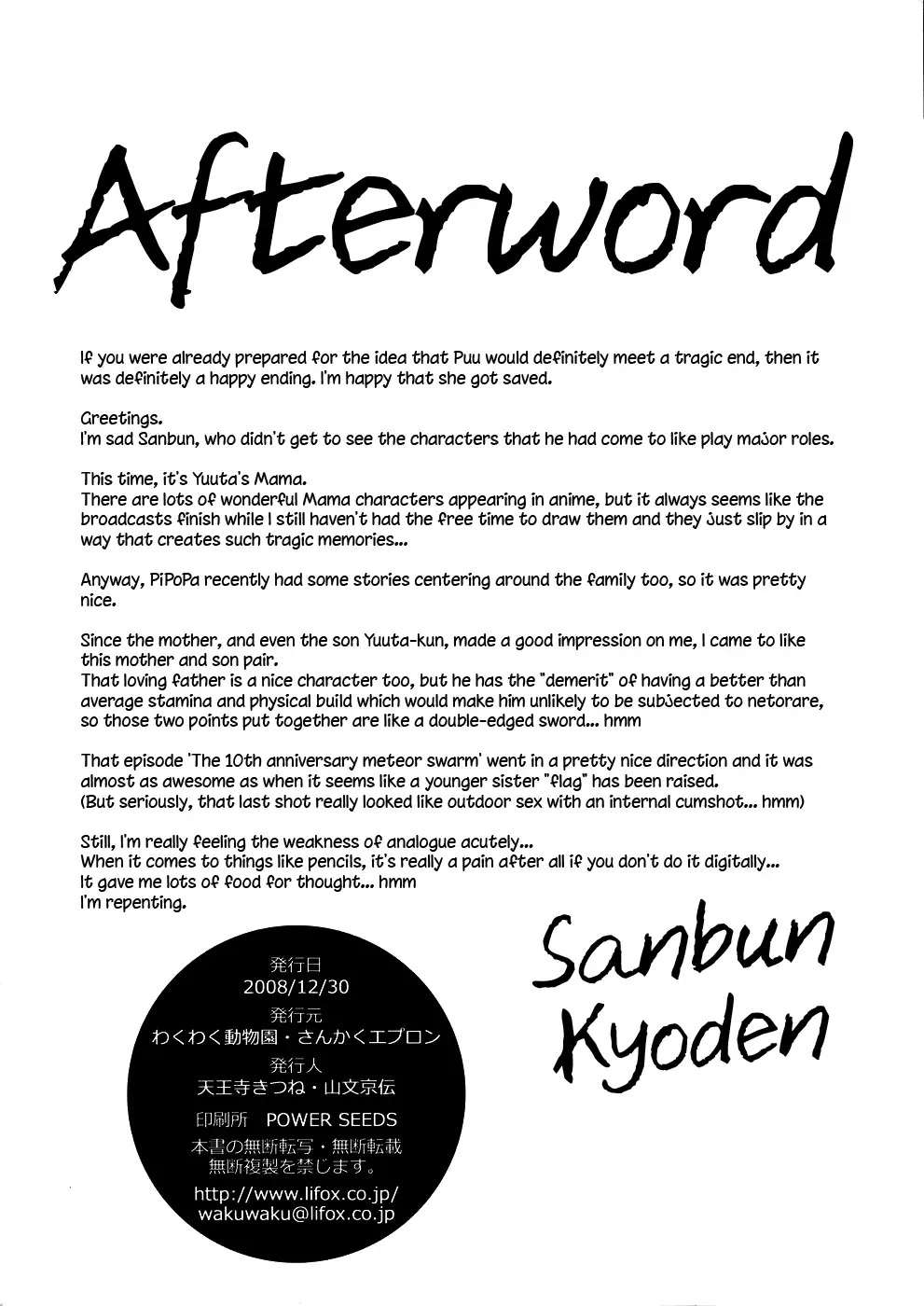 Watch (C75) [Sankaku Apron (Sanbun Kyoden)] Double Gig Side B - PiPoMama (Net Ghost PiPoPa) [English] {Funeral of Smiles & LWB} (C75) [さんかくエプロン (山文京伝)] Double Gig Side B - PiPoMama (ネットゴーストPIPOPA) [英訳]