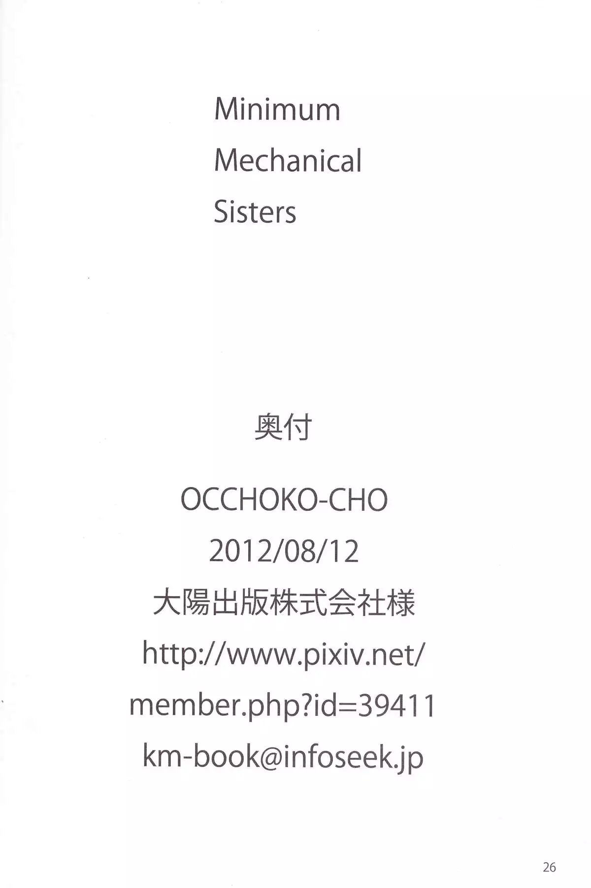 (C83) [OCCHOKO-CHO (KM)] Minimum Mechanical Sisters 2 (Busou Shinki)