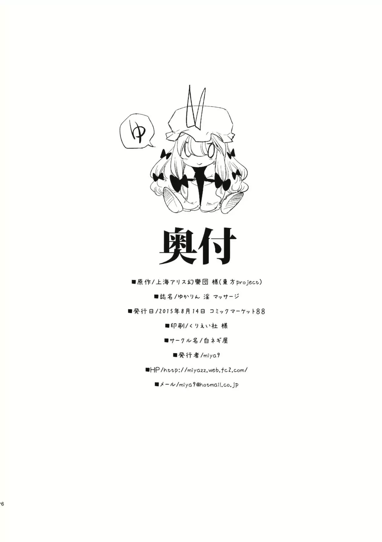 Watch (C88) [Shironegiya (miya9)] Yukarin In Massage (Touhou Project) (C88) [白ネギ屋 (miya9)] ゆかりん 淫 マッサージ (東方Project)