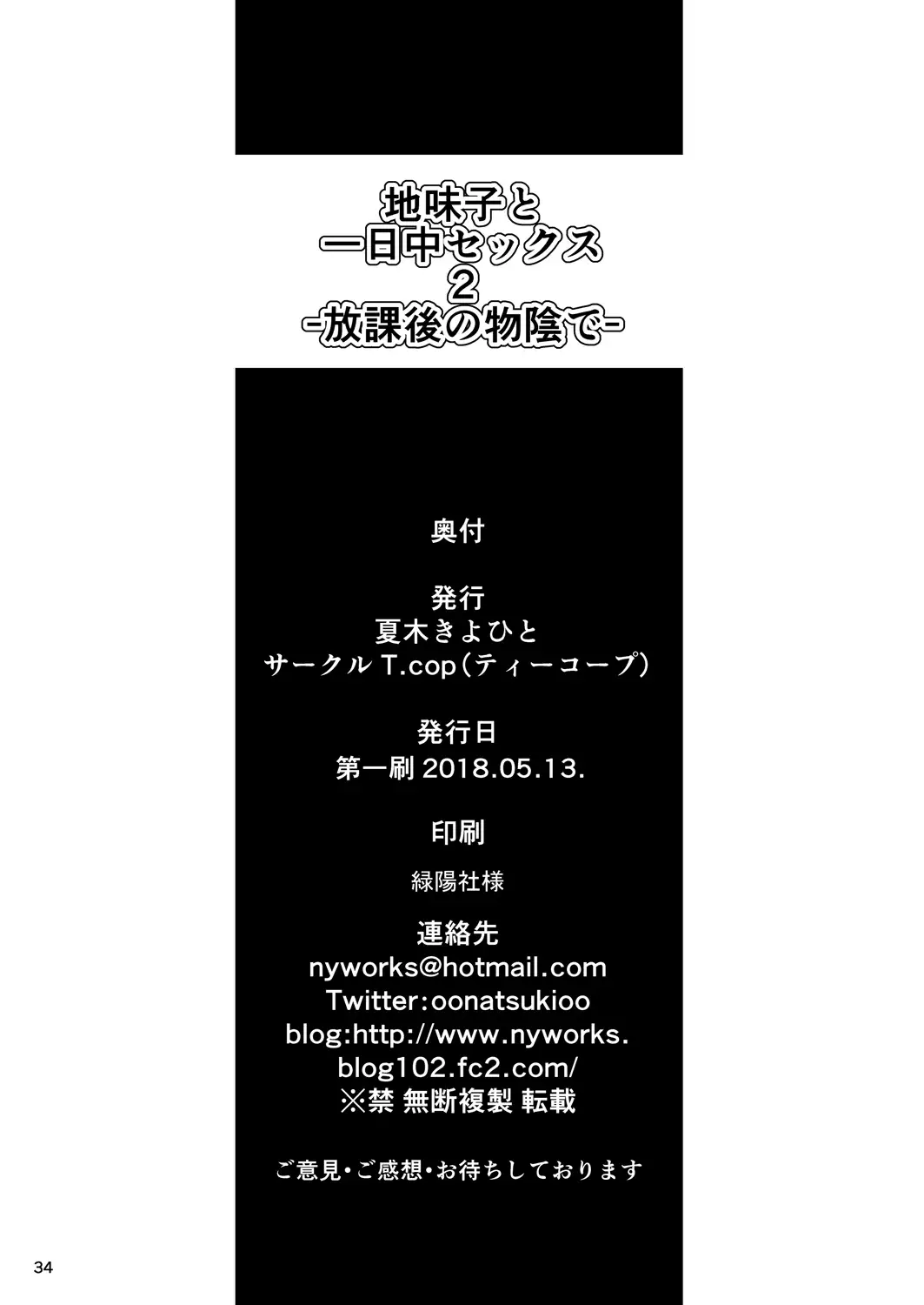 [T.cop (Natsuki Kiyohito)] Jimiko to Ichinichijuu Sex 2 -Houkago no Monokage de- [Digital]