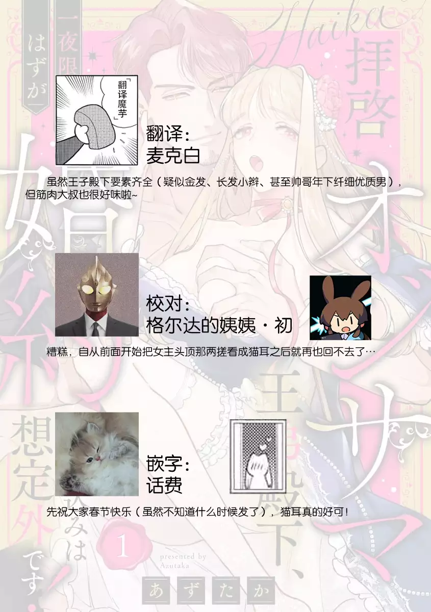[Azuta ka] haikei ojisama-ō otōto denka, ichiya kagiri no hazu ga kon'yaku no mōshikomi wa sōtei-gaidesu! | 拜启 王弟殿下、 本该是限定一夜但婚约的申请却是意料之外!1 [Chinese] [莉赛特汉化组]