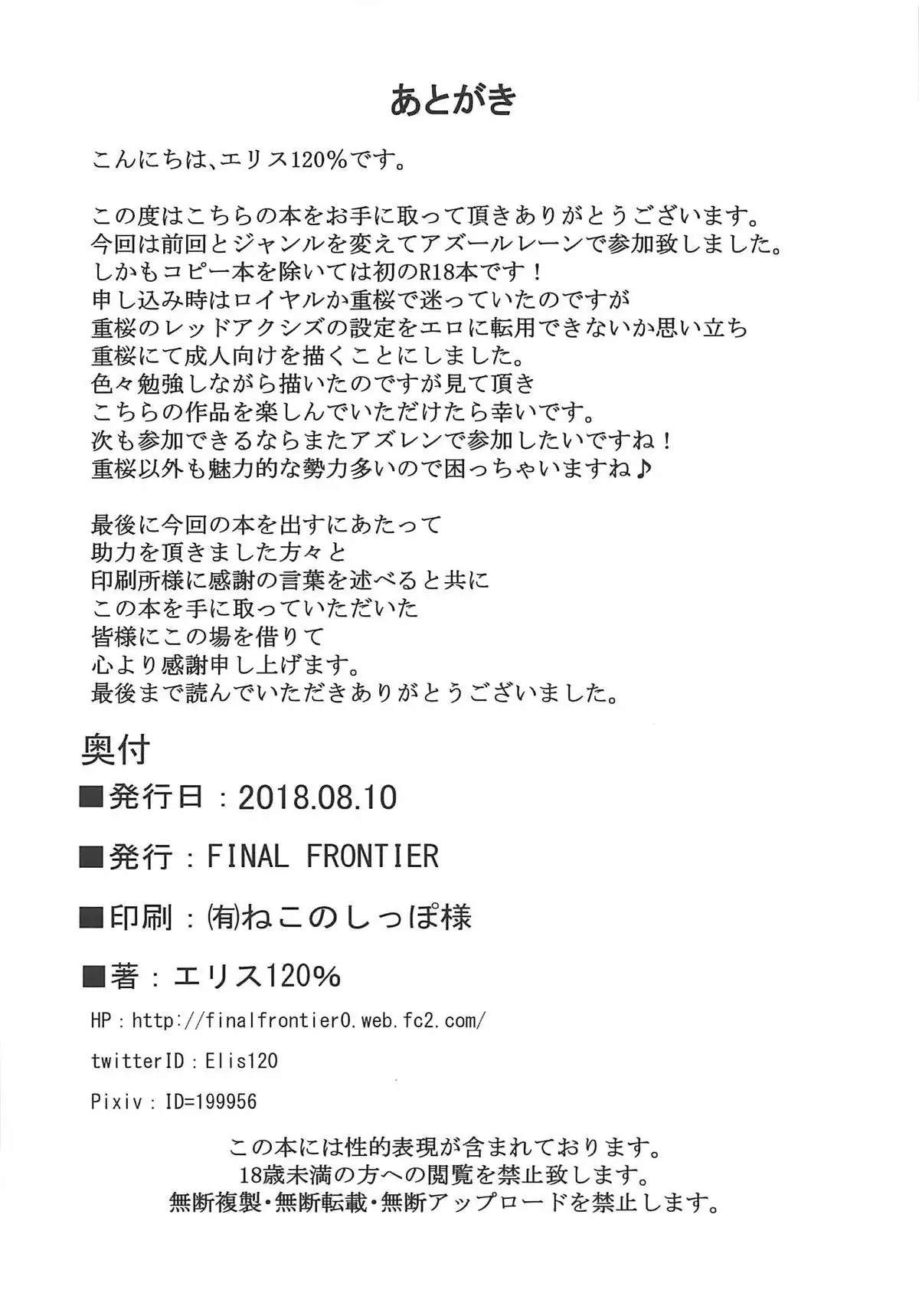 (C94) [FINAL FRONTIER (Elis 120%)] Juuou Kantai (Azur Lane)
