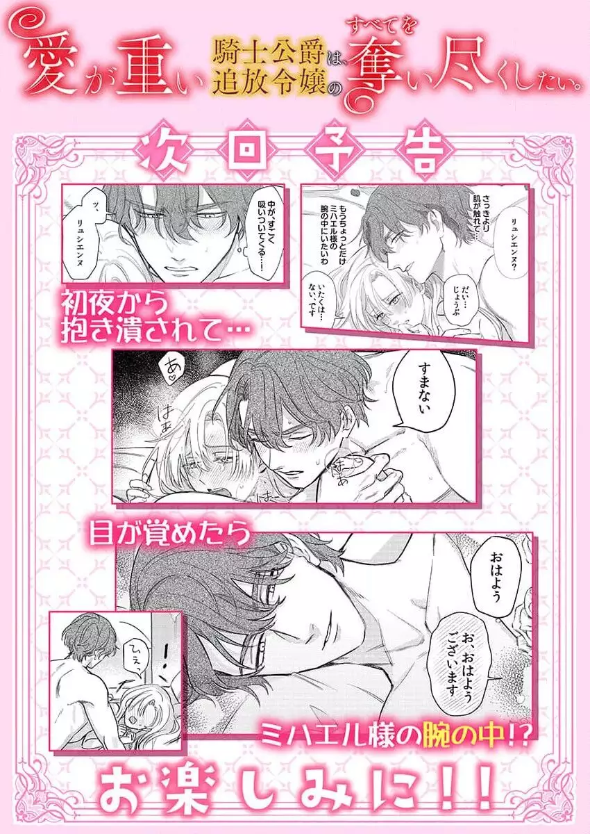 Ai ga Omoi Kishi Koushaku wa, Tsuihou Reijou no Subete o Ubaitsukushitai. | 骑士公爵爱意深重,想要索取放逐千金的一切。 1-3
