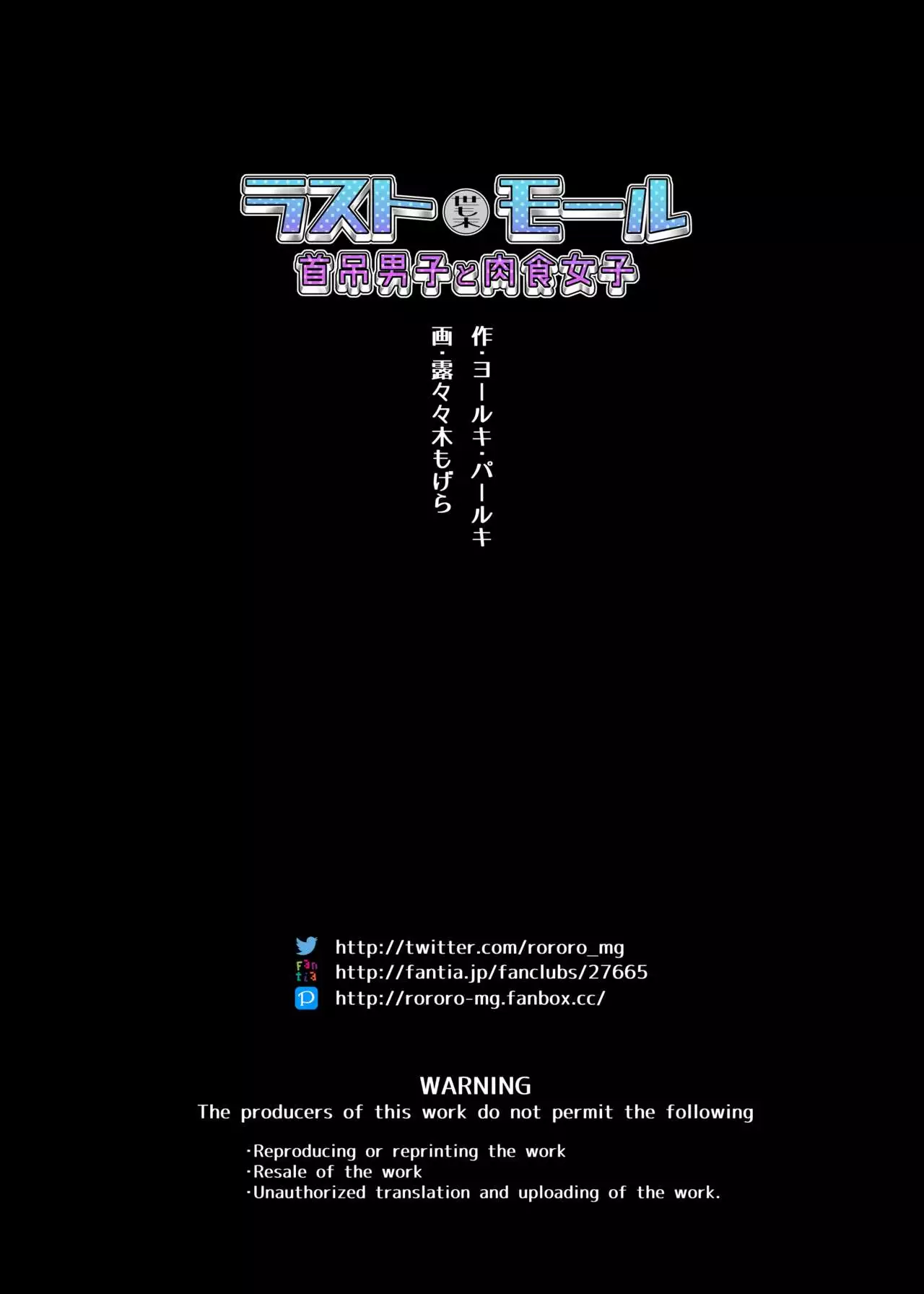 [Yolki Palki (Rororogi Mogera)] Last Mall ~Kubitsuri Danshi to Nikushoku Joshi~