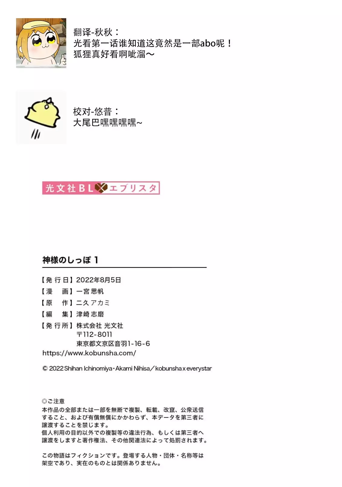 Watch [Ichinomiya Shihan, Nihisa Akami] Kami-sama no Shippo 1 | 神明的尾巴 1 [Chinese] [莉赛特汉化组]
