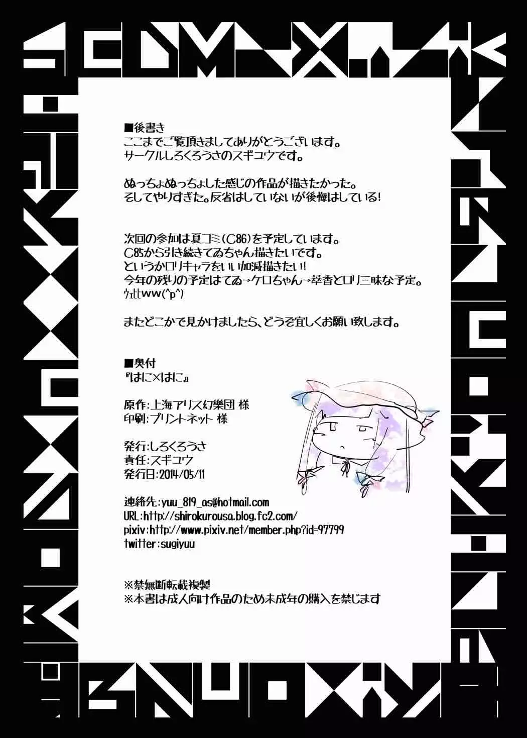 Watch (Reitaisai 11) [Shirokurousa (Sugiyuu)] Honey x Honey (Touhou Project) (例大祭11) [しろくろうさ (スギユウ)] はに×はに (東方Project)