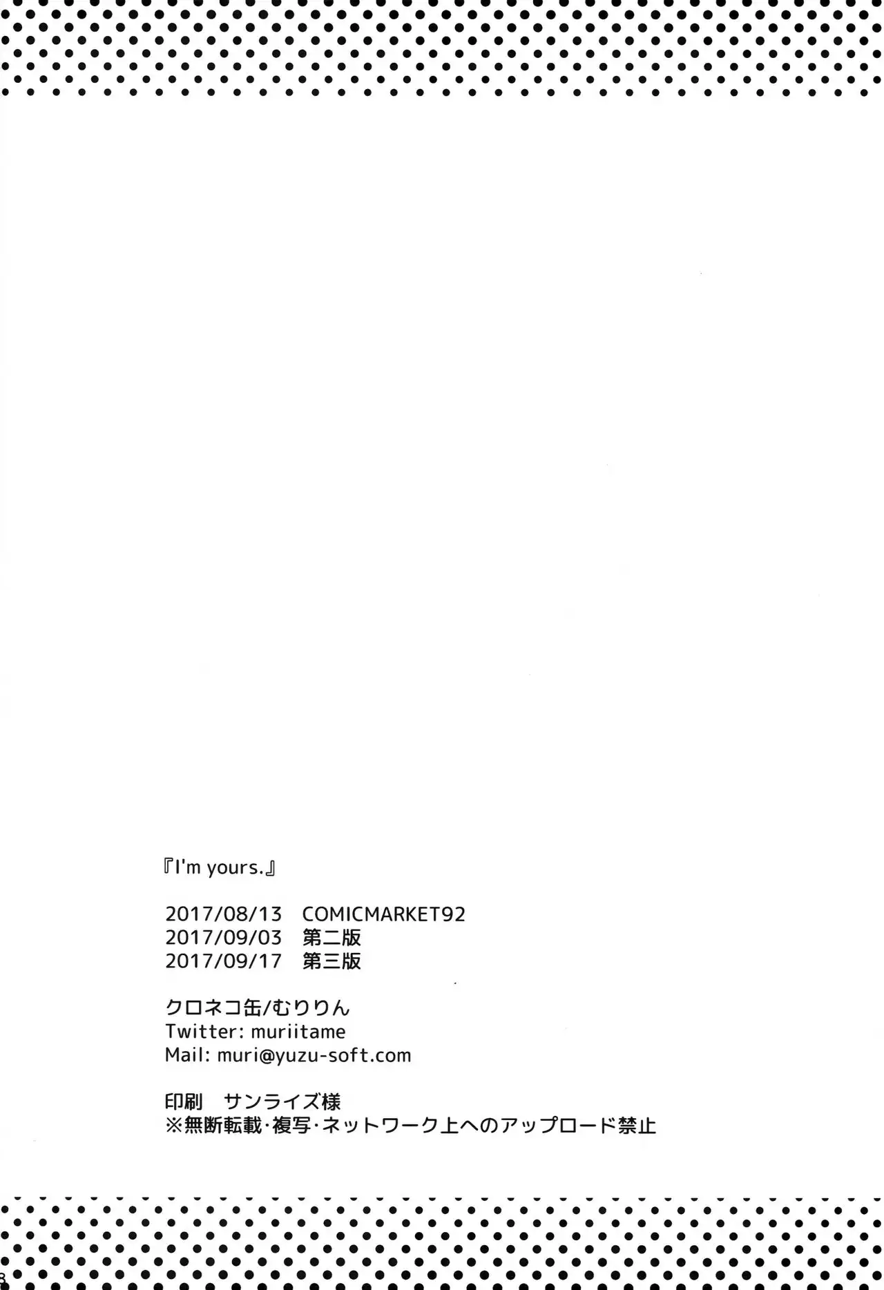 [Kuroneko-kan (Muririn)] I'm yours. [2017-09-17]
