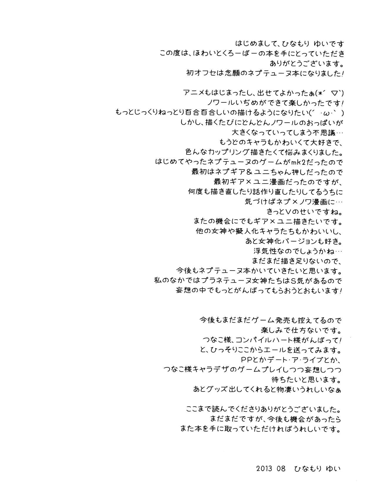 (C90) [Yumemiru Shiro (Haru)] Megami na Koibito (Hyperdimension Neptunia)