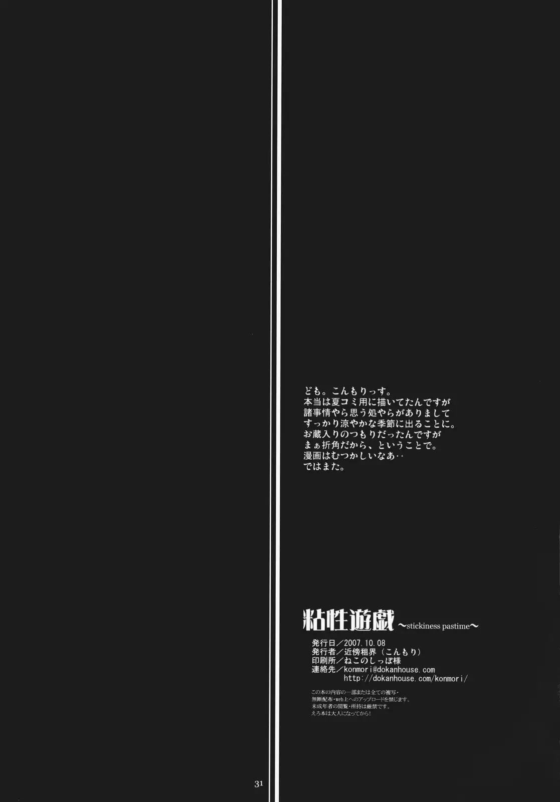 Watch (SC37) [Kinbou Sokai (Konmori)] Nensei Yuugi (サンクリ37) [近傍租界 (こんもり)] 粘性遊戯