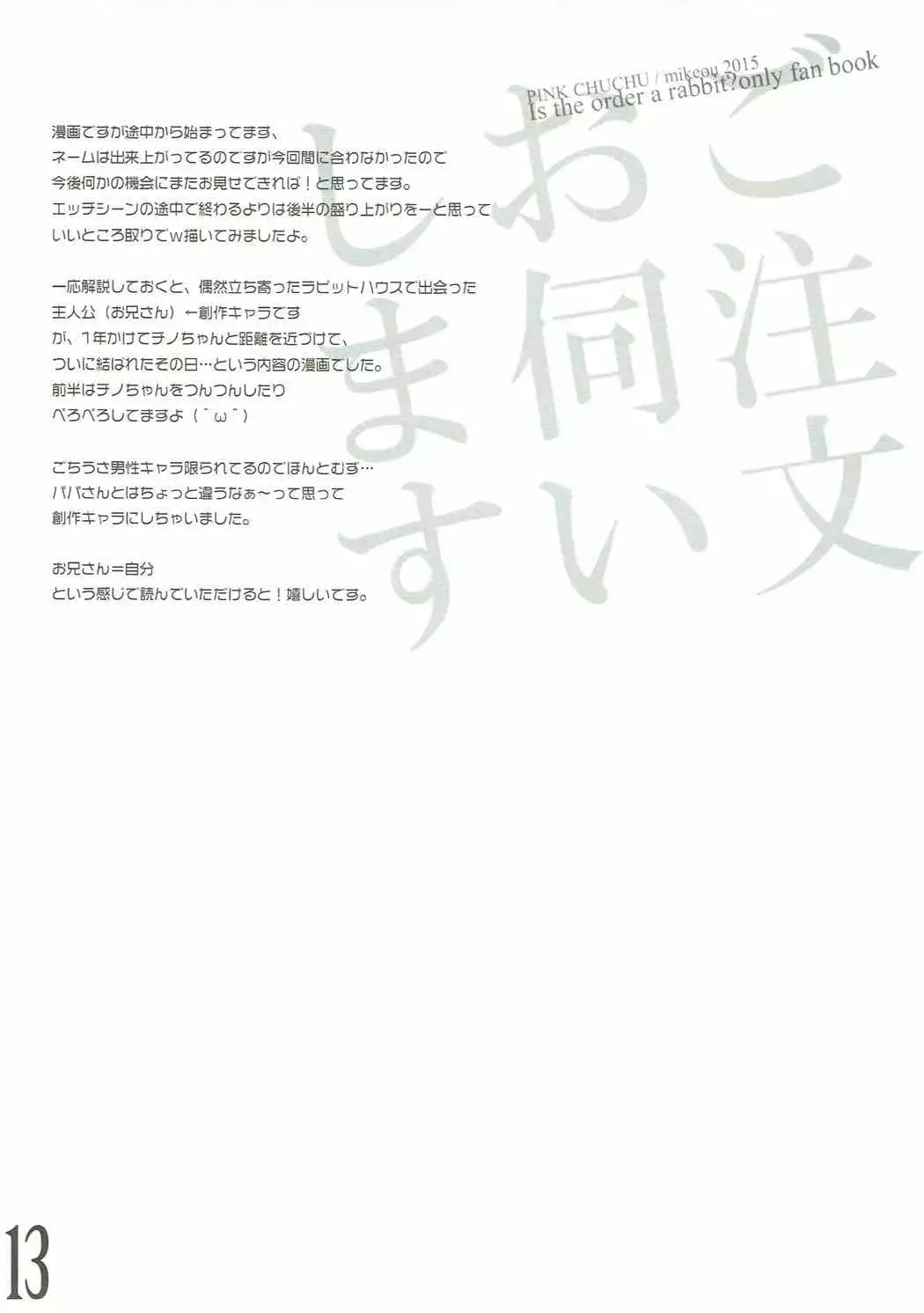 Watch (Mimiket 33) [PINK CHUCHU (Mikeou)] Gochuumon Oukagai Shimasu (Gochuumon wa Usagi desu ka?) (みみけっと33) [PINK CHUCHU (みけおう)] ご注文お伺いします (ご注文はうさぎですか?)