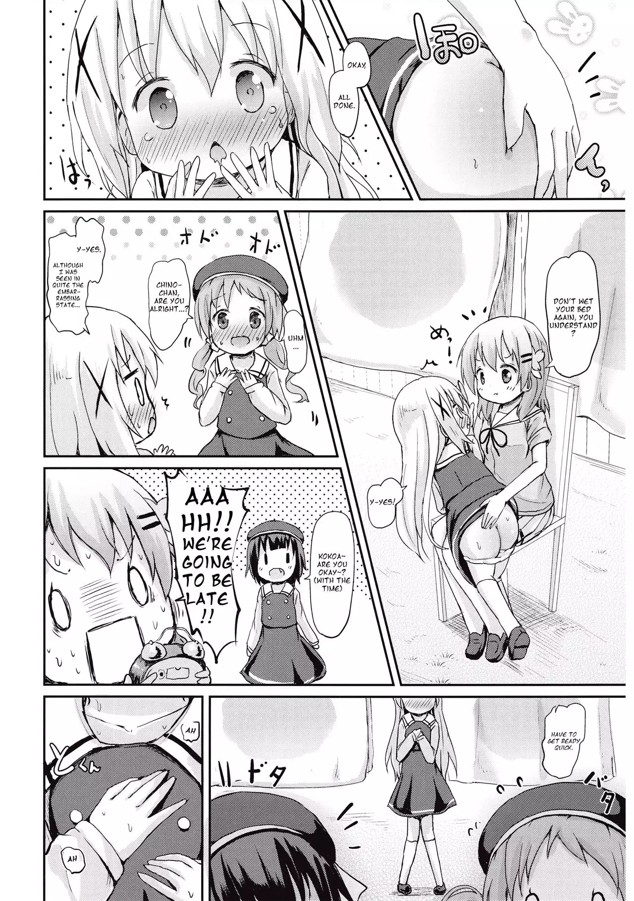 Watch (C89) [Netekuras (Lolisin)] Moshikashite, Chino-chan Onesho Shichatta no?? (Gochuumon wa Usagi desu ka?) [English] (C89) [ネテクラス (ろりしn)] もしかして、チノちゃんおねしょしちゃったの?? (ご注文はうさぎですか?) [英訳]