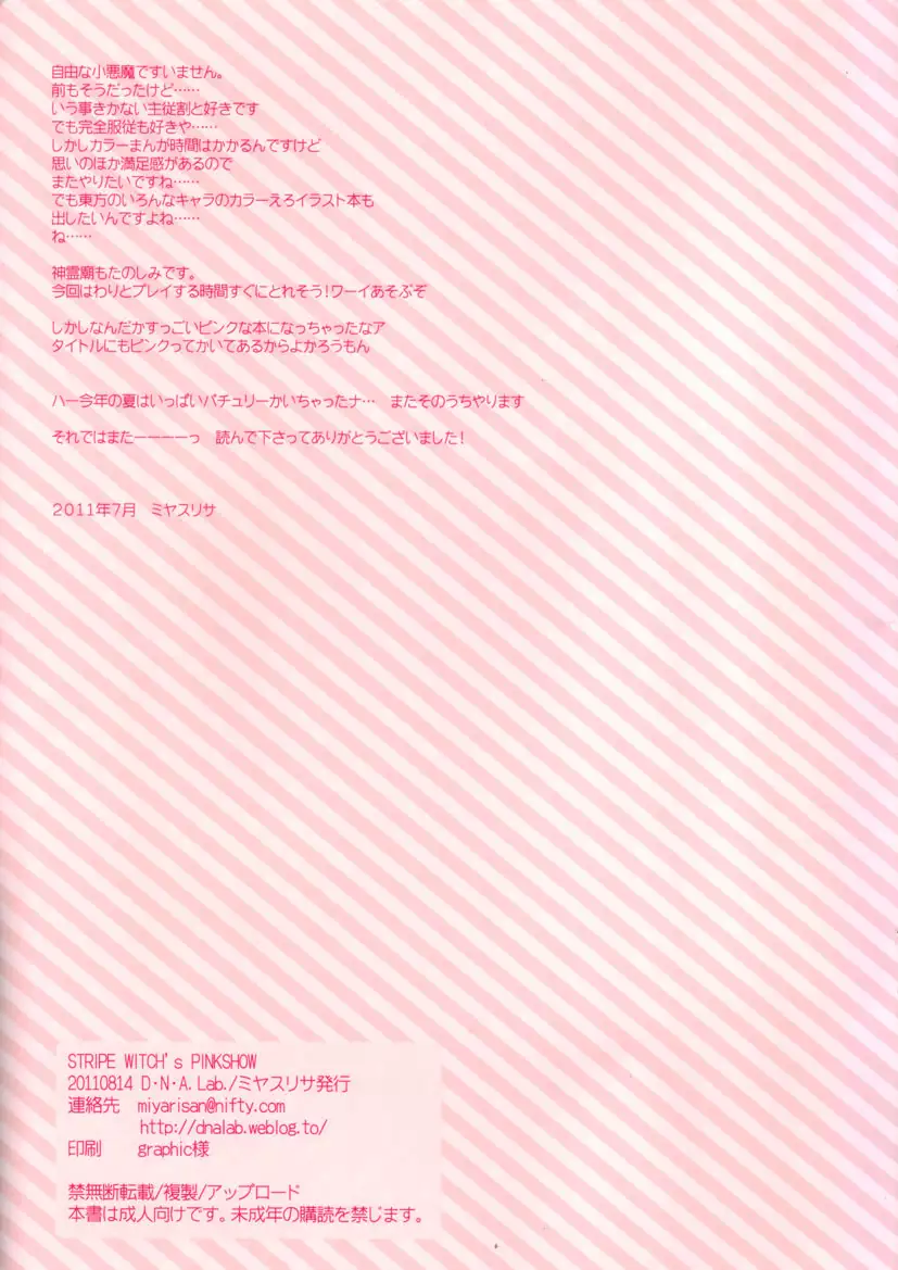 Watch (C80) [D.N.A.Lab. (Miyasu Risa)] STRIPE WITCH's PINKSHOW (Touhou Project) (C80) [D・N・A.Lab. (ミヤスリサ)] STRIPE WITCH's PINKSHOW (東方Project)