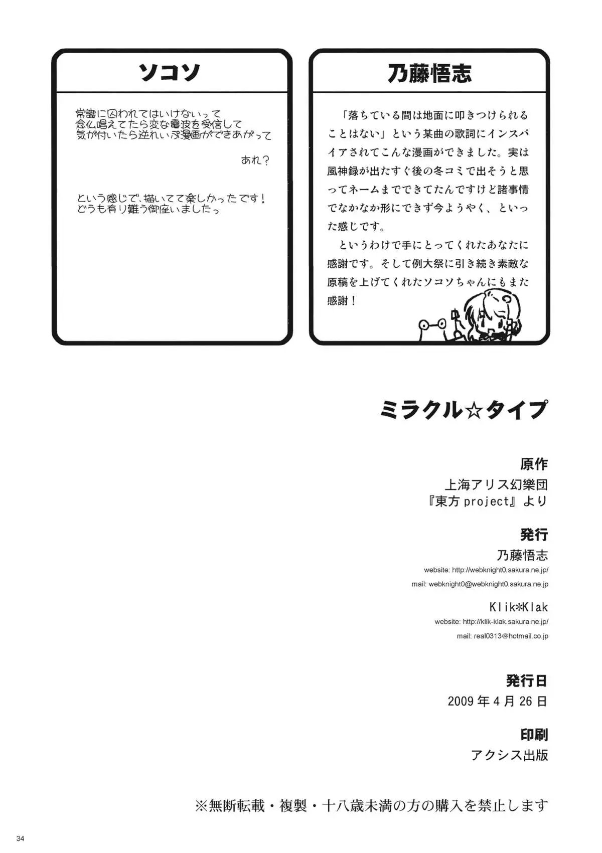 Watch [Knight Satoshi x Klik*Klak] Milk ☆Type (Touhou) [乃藤悟志][Klik*Klak] ミラクル☆タイプ (東方) (COMIC1☆3)