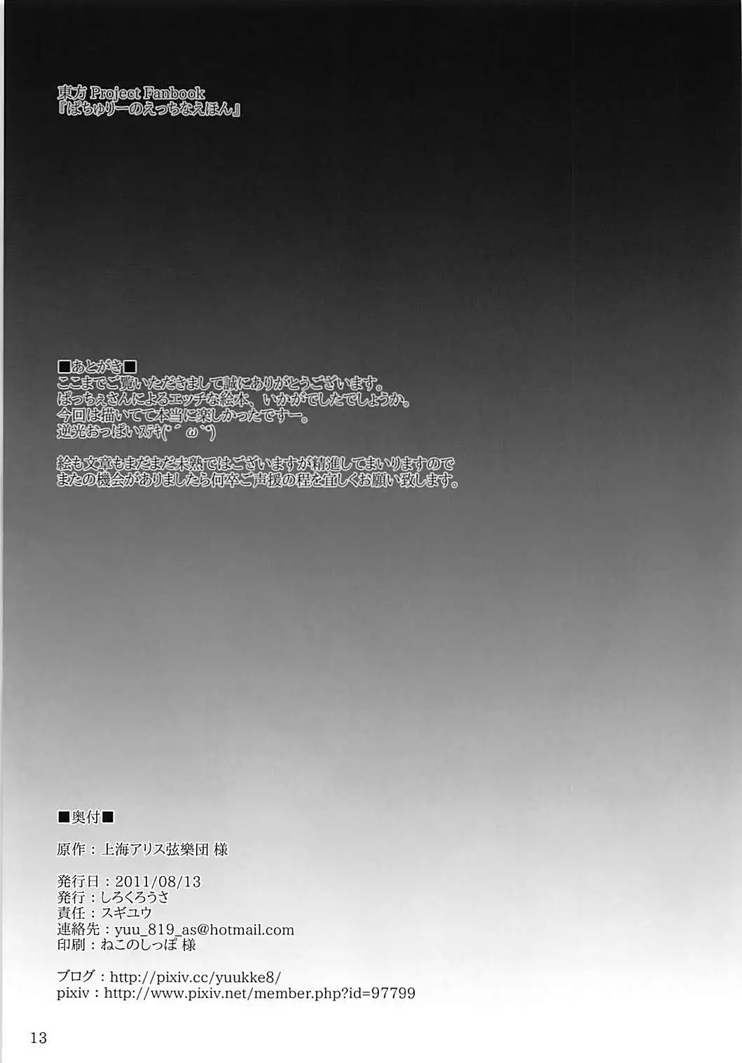 (C80) [Shirokurousa (Sugiyuu)] Patchouli no Ecchi na Ehon (Touhou Project)