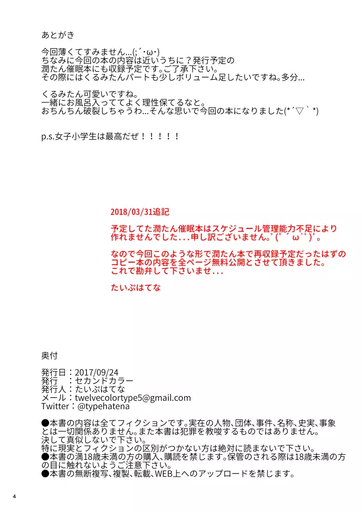 (SC2017 Autumn) [2nd color (Typehatena)] Saimin de Onii-chan ni Narisumashite Joushiki Kaihen Shite Kurumi-tan ni Sukihoudai Shichau Hon (Tenshi no 3P!)