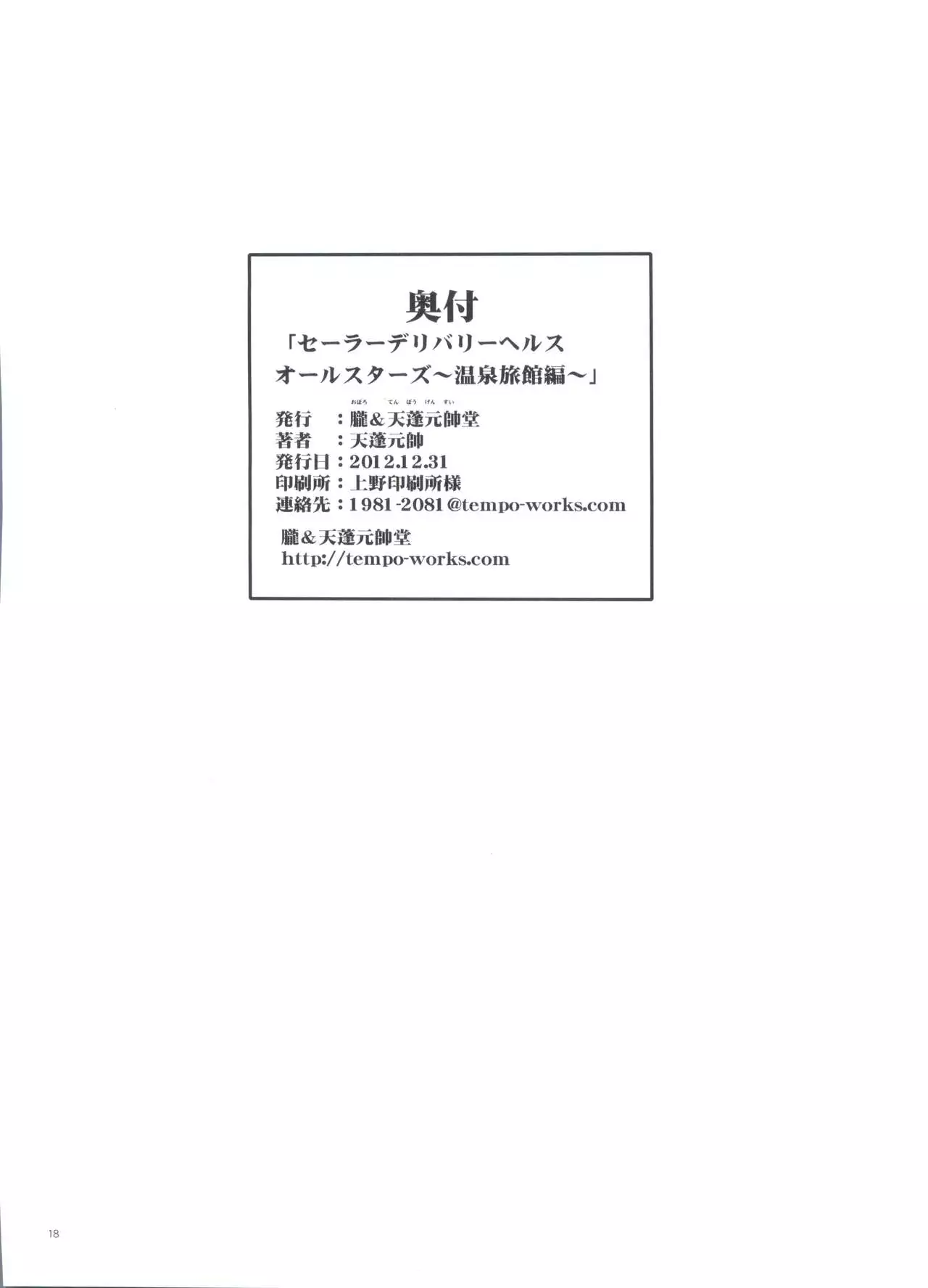 (C83) [Oboro & Tempo Gensui Dou (Tempo Gensui)] Sailor Delivery Health All Stars ~Onsen Ryokan-hen~ (Bishoujo Senshi Sailor Moon) [English] [q91]