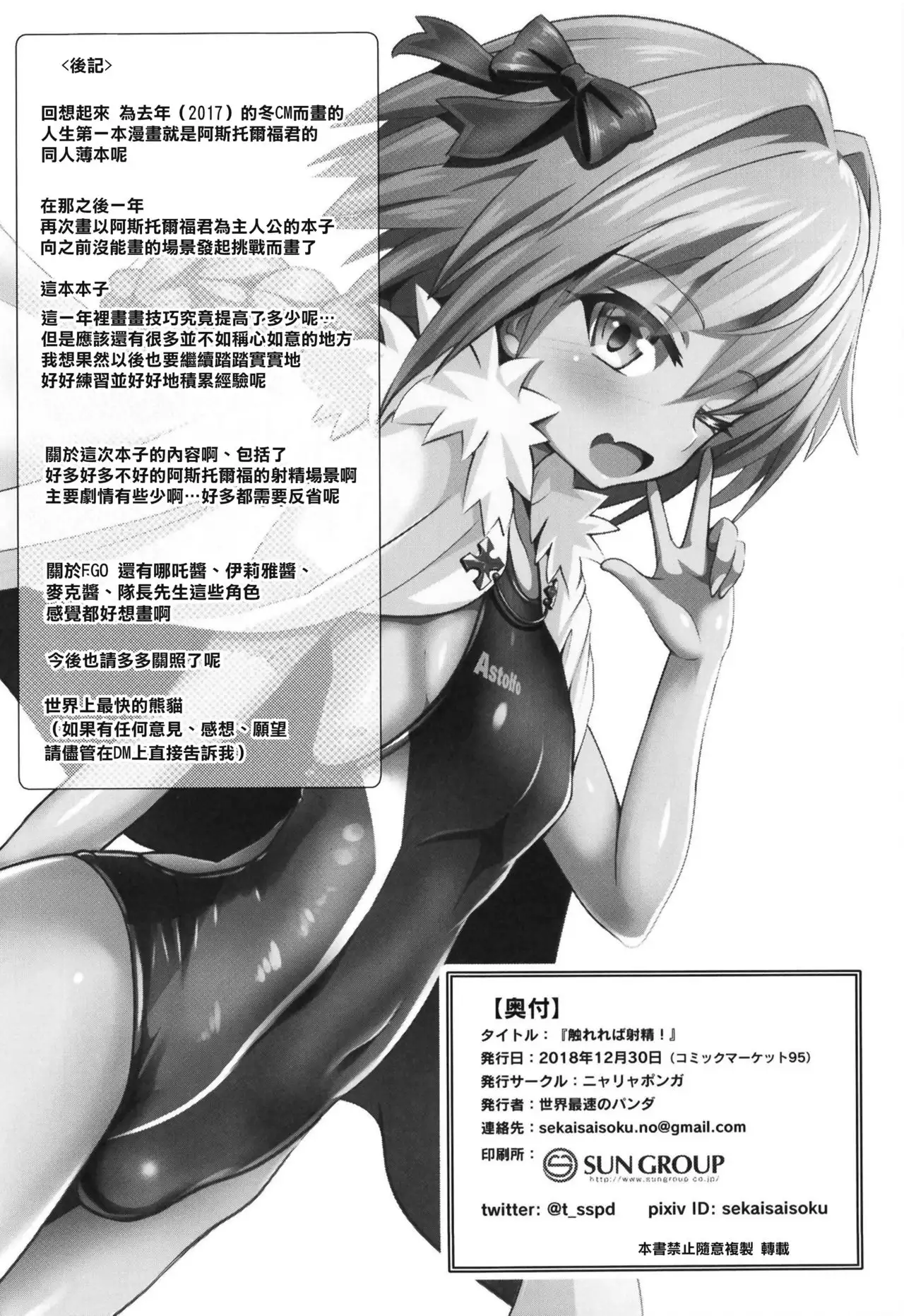 (C93) [Nyala Ponga (Sekai Saisoku no Panda)] Astolfo-kun to Ryoushi Koukan Shiau Hon (Fate/Grand Order) [Chinese] [瑞树汉化组]